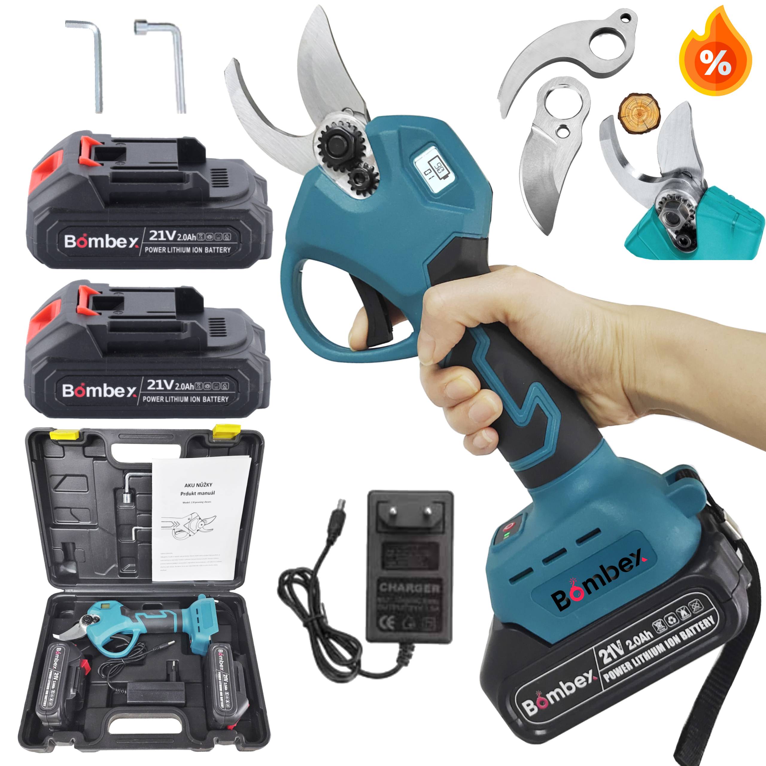 Akumulatorowy ręczny sekator elektryczny + zapasowy akumulator